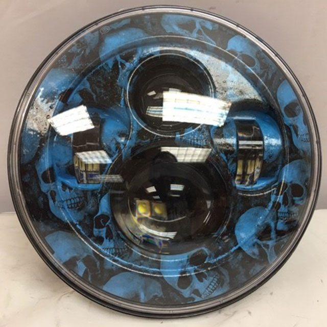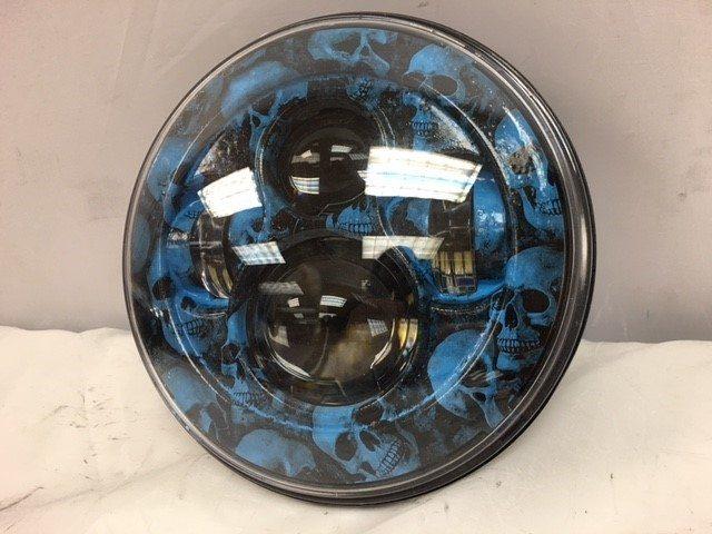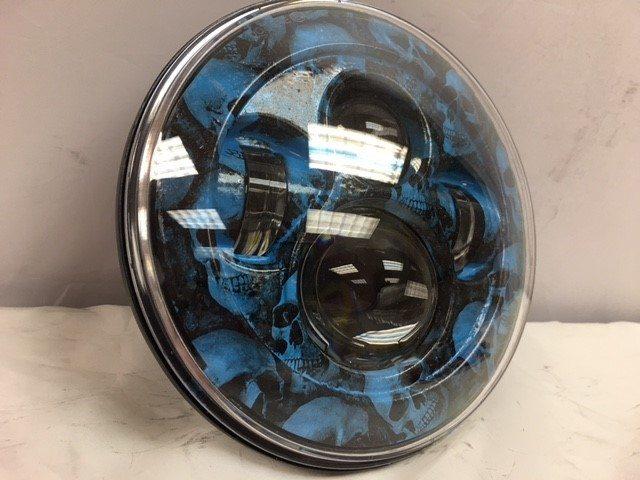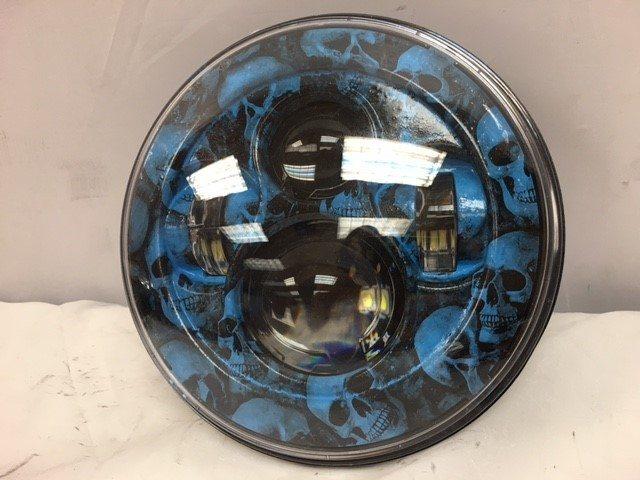 7" Custom Blue Skull Design PROJECTOR HARLEY DAVIDSON DAYMAKER LED HEADLIGHT LAMP FOR HARLEY AND OTHER MOTORCYCLE MODELS