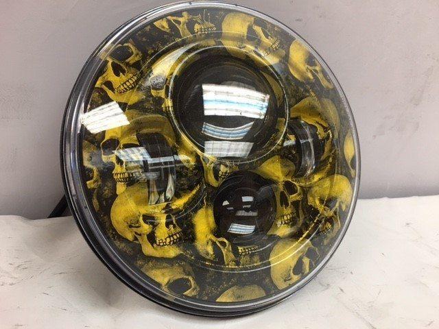 7" Custom Yellow Skull Design PROJECTOR HARLEY DAVIDSON DAYMAKER LED HEADLIGHT LAMP FOR HARLEY AND OTHER MOTORCYCLE MODELS