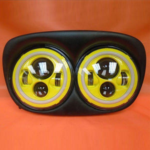 • DUAL 7" YELLOW DAYMAKER YELLOW HALO LED ROAD GLIDE Black Light Bulb Headlight Motorcycle Harley Bezel