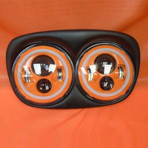 DUAL 7" ORANGE DAYMAKER LED ROAD GLIDE Black Light Bulb Headlight Motorcycle Harley Bezel