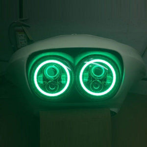 DUAL 7" DAYMAKER 2014 GREEN HALO LED Replacement ROAD GLIDE Black Light Bulb Headlight Harley Bezel