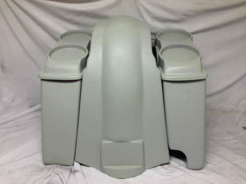 You will need to sand, prep, minor filler, mockup, primer & paint before installing as these are unfinished. All items pictured are included in this listing. These do not include hardware. Stock Harley hardware will fit. Don't buy those cheap abs/plastic units that crack with vibration and break with the smallest mishap, you won't be able to fix them if you lay your bike down. These units are made out of hand laid fiberglass, they are thick and durable and forgiving in case of an accident or incident. The listings is for 1 set only and does not include the bike! Get your Harley looking like a million bux with this saddlebag/fender kit! . All Items are made in high quality hand laid fiberglass, these are not mass produced cheap and flimsy units, they are thick and better quality than factory.