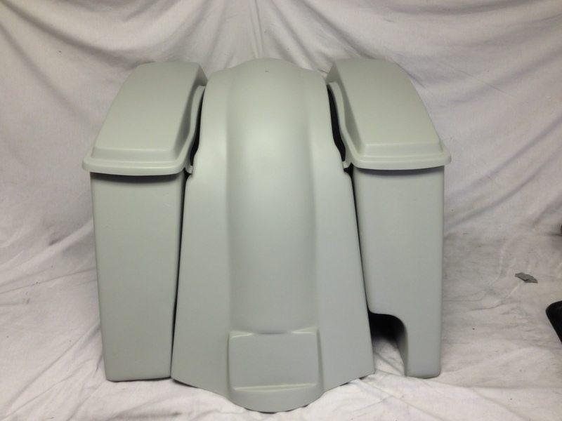 You will need to sand, prep, minor filler, mockup, primer & paint before installing as these are unfinished. All items pictured are included in this listing. These do not include hardware. Stock Harley hardware will fit. Don't buy those cheap abs/plastic units that crack with vibration and break with the smallest mishap, you won't be able to fix them if you lay your bike down. These units are made out of hand laid fiberglass, they are thick and durable and forgiving in case of an accident or incident. The listings is for 1 set only and does not include the bike! Get your Harley looking like a million bux with this saddlebag/fender kit! . All Items are made in high quality hand laid fiberglass, these are not mass produced cheap and flimsy units, they are thick and better quality than factory.