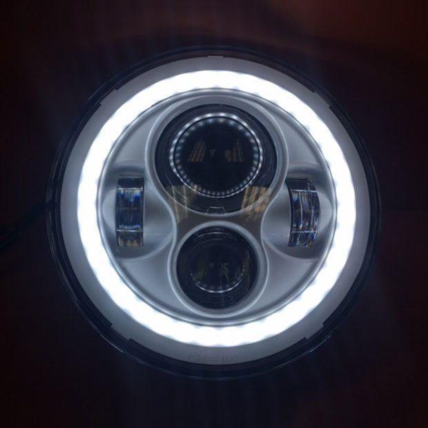 7" WHITE with WHITE HALO PROJECTOR HARLEY DAVIDSON DAYMAKER LED HEADLIGHT LAMP FOR HARLEY AND OTHER MOTORCYCLE MODELS