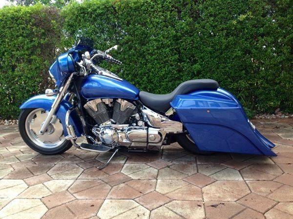 Extended 6" Stretched Saddlebags "Out & Down", and Rear Fender for the Honda VTX 1800 & 1300 Series - Fiberglass - No cut outs lids