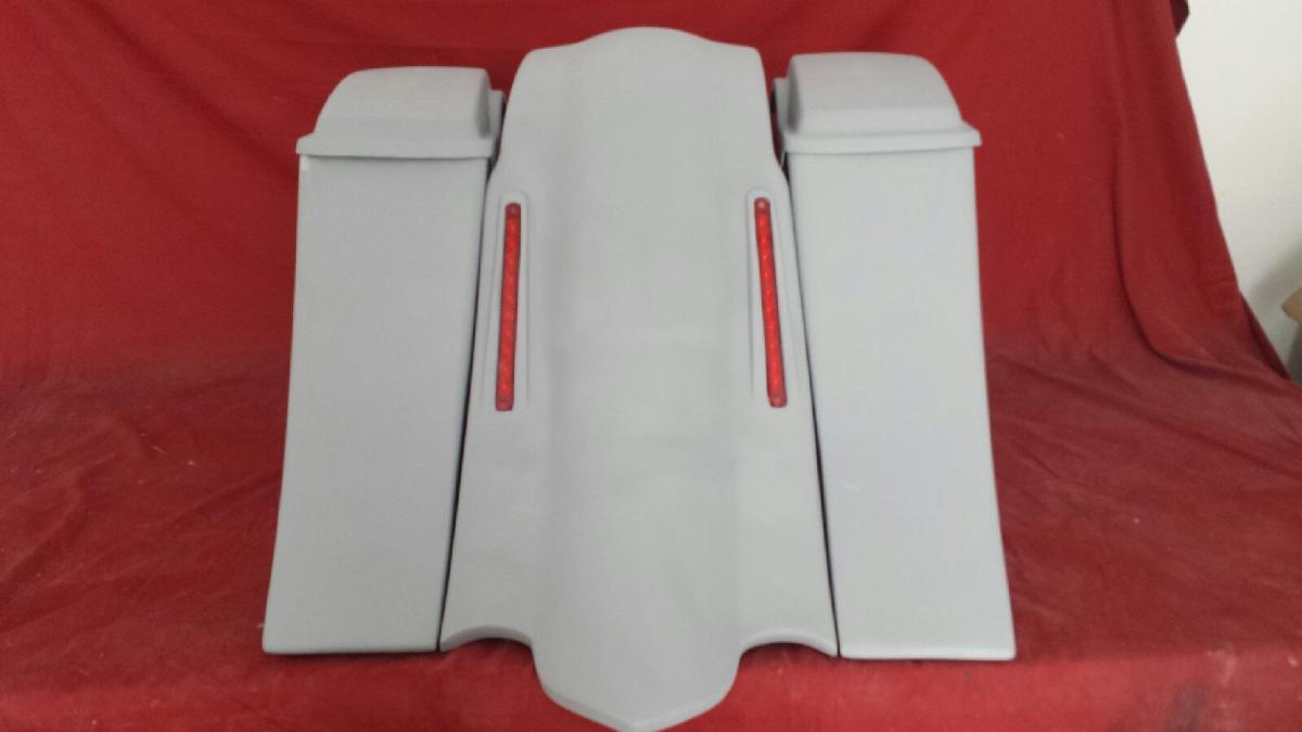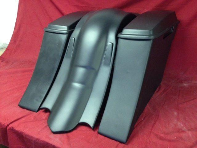 You will need to sand, prep, minor filler, mockup, primer & paint before installing as these are unfinished. All items pictured are included in this listing. These do not include hardware. Stock Harley hardware will fit. Don't buy those cheap abs/plastic units that crack with vibration and break with the smallest mishap, you won't be able to fix them if you lay your bike down. These units are made out of hand laid fiberglass, they are thick and durable and forgiving in case of an accident or incident. The listings is for 1 set only and does not include the bike! Get your bike looking like a million bux with this saddlebag/fender kit! . All Items are made in high quality hand laid fiberglass, these are not mass produced cheap and flimsy units, they are thick and better quality than factory.
