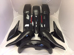 Harley Davidson 6" Extended Saddlebags Out & Down Bags Painted VIVID BLACK COMBO Front Fender Tank Shrouds Side Covers