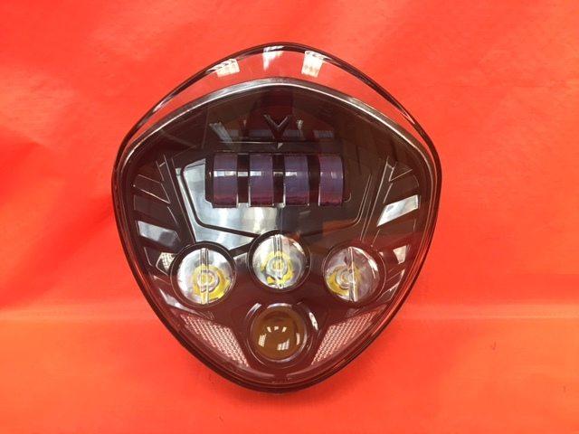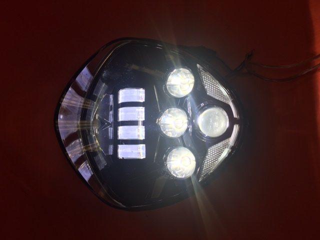THIS IS A LED PROJECTOR HEADLIGHT WITH A HIGH INTENSITY BRIGHT WHITE LEDS COMMONLY KNOWN AS THE HARLEY DAVIDSON DAYMAKER!
