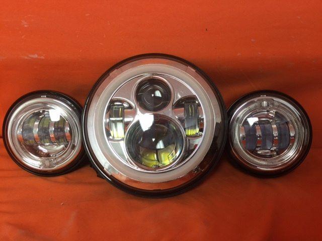THIS IS A LED PROJECTOR HEADLIGHT WITH A HIGH INTENSITY BRIGHT WHITE LEDS COMMONLY KNOWN AS THE HARLEY DAVIDSON DAYMAKER!