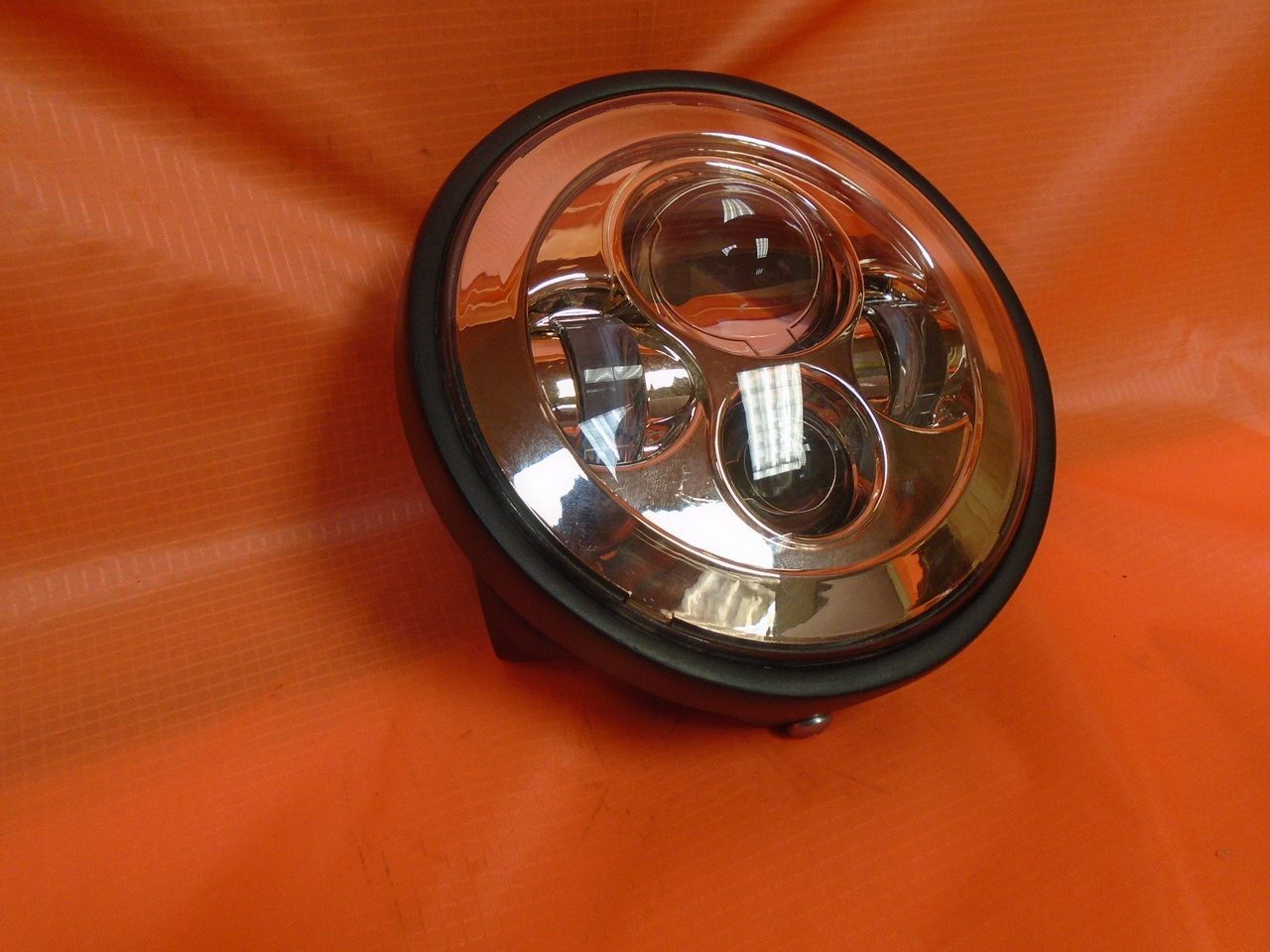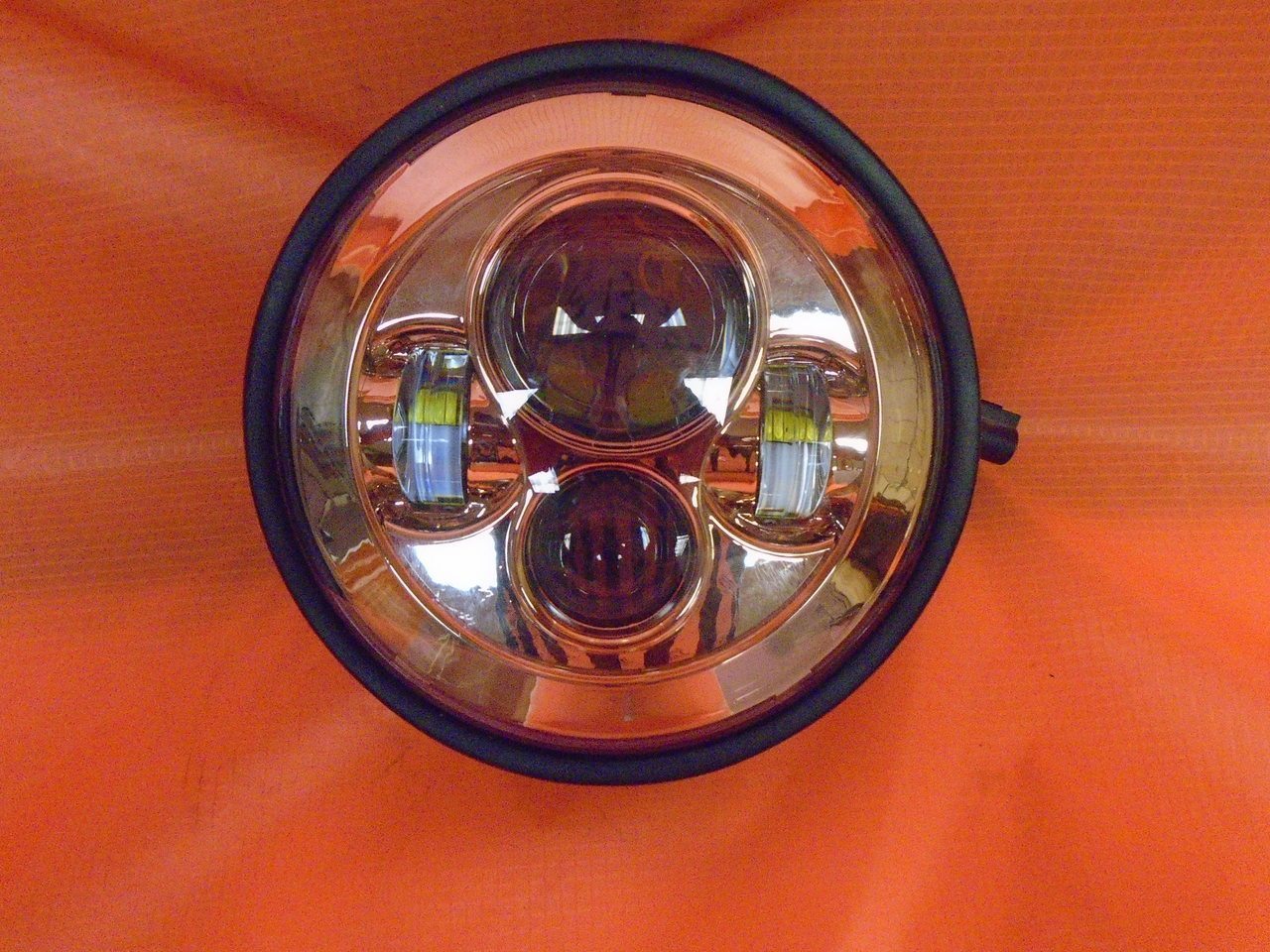 THIS LISTING IS FOR ONE NEW 7 INCH ROUND 12 VOLT HIGH/LOW BEAM LED PROJECTOR MOTORCYCLE HEADLIGHT REPLACEMENT UNIT - SUPER BRIGHT 6500K LEDS. THESE DAYMAKER'S ARE EXTREMELY BRIGHT AND LIGHT UP WHITE COMPARED THE STANDARD STOCK YELLOW LIGHT HEADLIGHT BULBS. INCLUDES PLUG AND PLAY WIRING PLUG THAT WILL PLUG DIRECTLY INTO THE STOCK HARNESS. PLEASE NOTE THIS ITEM CAN TAKE UP TO 12 BUSINESS DAYS TO SHIP DUE TO THE HIGH DEMAND, MOST OF THE TIME WE CARRY THESE IN STOCK BUT SOMETIMES WE CAN SELL OUT QUICKLY. THANKS FOR YOUR UNDERSTANDING WITH THIS